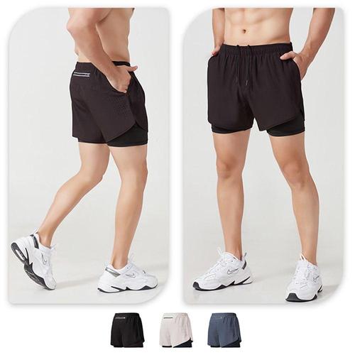 남성용 러닝 반바지 2 in 1 이중 레이어 스포츠 반바지 운동복 헬스 피트니스 숏팬츠 트레이닝 조깅 바지 남성 의류
