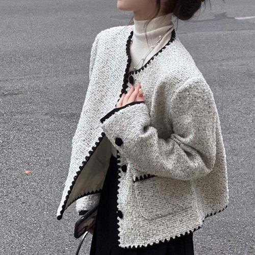 [오너클랜]인기상품 간절기 트위드 진주단추 숏 자켓 노카라 [WFJ8PTQ_251031]