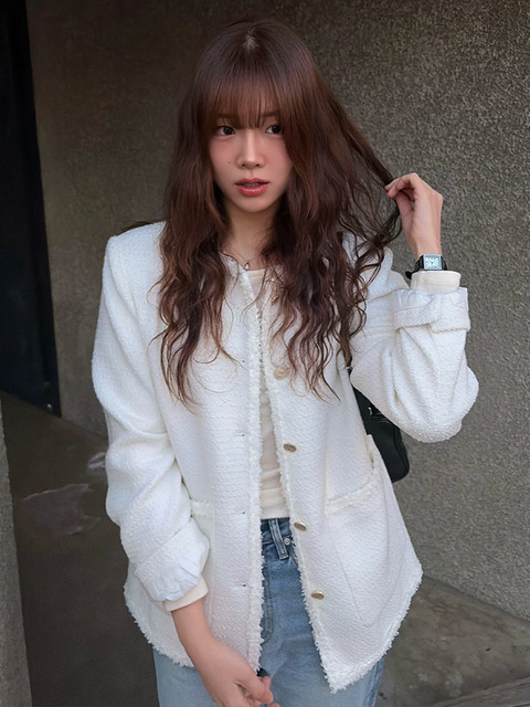 정상가:119,000원 | 태슬 포켓 금장 버튼 여성 트위드 자켓 (DO1JK029A)
