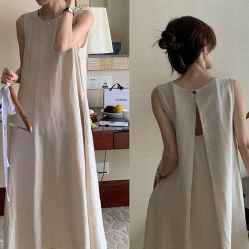G125768_뒤트임 린넨 나시 롱원피스 린넨원피스