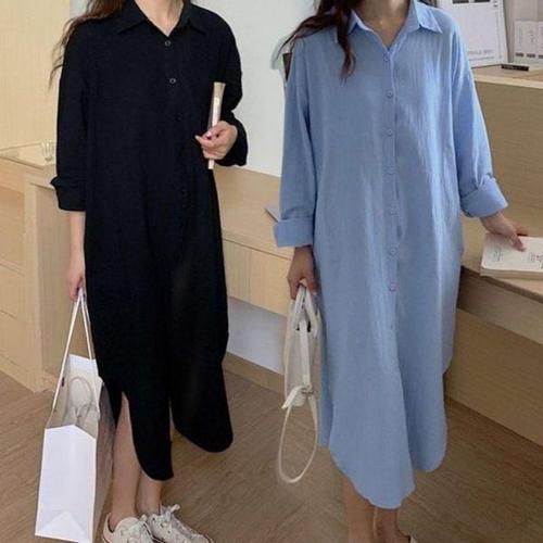 [에이치플러스몰]셔츠 인기 여성 롱 원피스 감성 봄 가을 여름 옆 트임