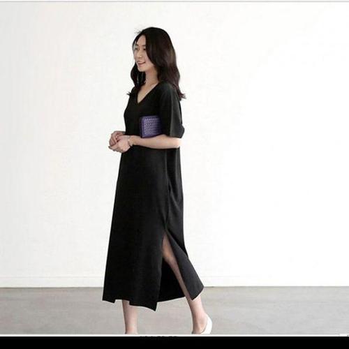 [에이치플러스몰]옆트임 여자 캐주얼 원피스 브이넥 필수템 여름 롱 치