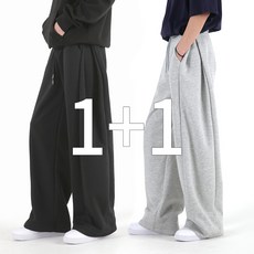 오버나인 1+1 남자 사이드 핀턱 옆트임 바지 와이드 트레이닝 팬츠