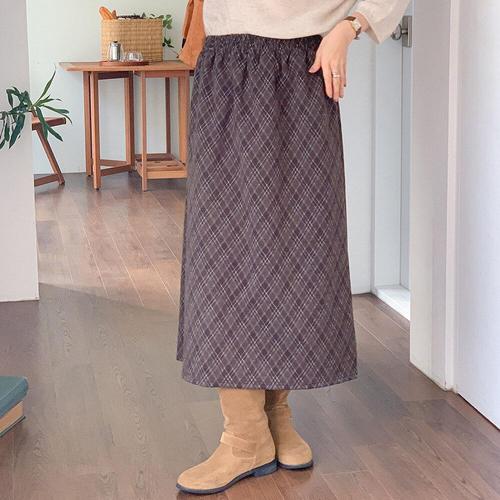 샵앤) 체크 밴딩 앞트임 A라인 롱 스커트 STJ-WSK-20093-그린