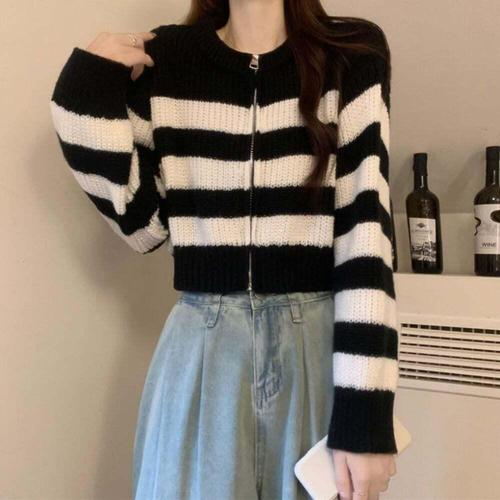 [오노마] ONM 특이한 카라 포인트 여성 가을 스트라이프 니트 긴팔