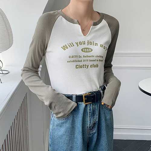 슈팅스타 / 디자인 센스 V넥 레터링 프린트 나그랑 긴팔
