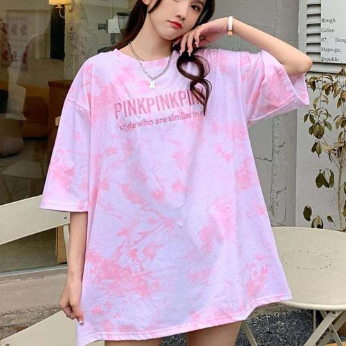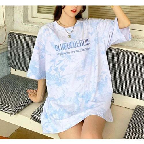 [셀럽하우스]여성 HCQM2710 물감 나염 영문 반팔티 데일리 캐주얼 티셔츠