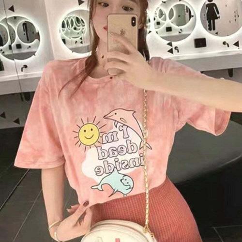 [셀럽하우스]여성 BGBY2502 루즈핏 캐주얼 돌고래 물감 반팔 티셔츠