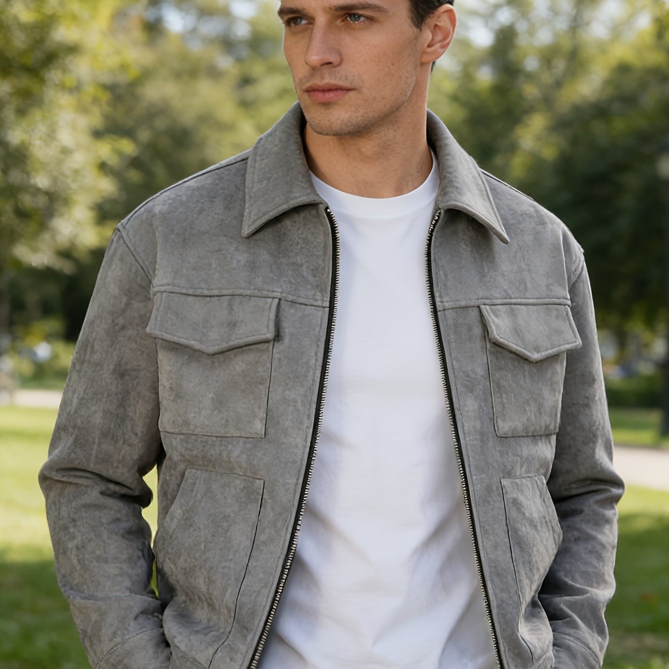 TEMU 봄 신상 미국 빈티지 바이커 자켓 남성용, 패셔너블 캐주얼 자켓 포켓 포함, 편안한 지퍼 아우터웨어