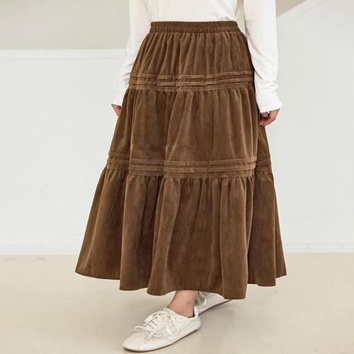[다잇템][다잇템] 여성 후레아 롱 골덴 티어드 클래식 스커트_23822240_588872