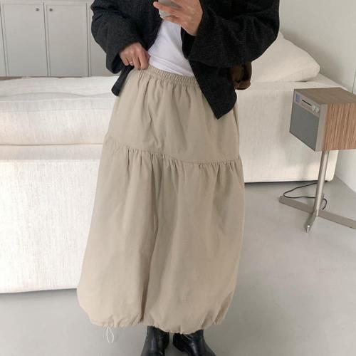 옷자락 / 여자 겨울 항아리 티어드 스트링 밴딩 패딩 롱스커트