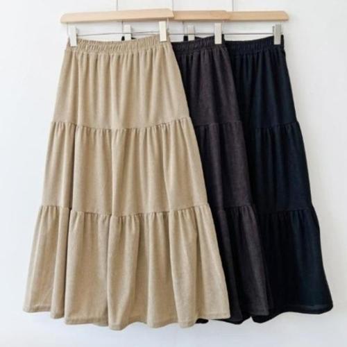 [다잇템] 여자 치마 포근한 티어드 FW 벨루어 롱 고무줄 치마