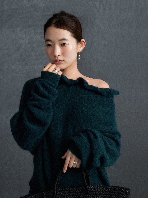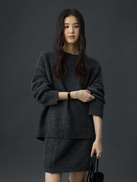 [티엔느] 헤일로 볼륨 크루넥 니트 스웨터_차콜