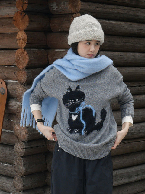 [티엔느] 뮤 고양이 그래픽 울 니트