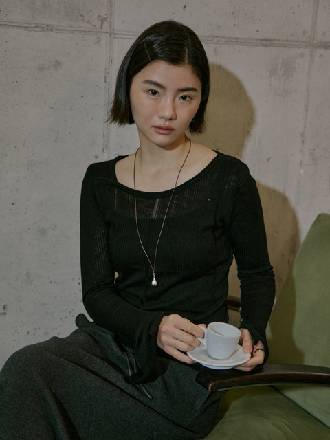 [티엔느] 칼리아 보트넥 버튼 슬리브 니트_블랙