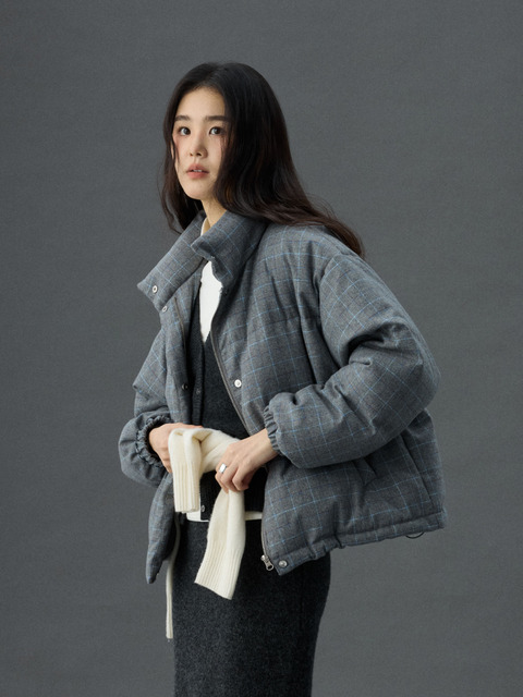 [티엔느] 모른 체크 덕다운 점퍼_그레이