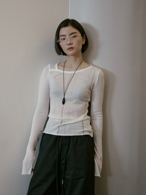 [티엔느] 칼리아 보트넥 버튼 슬리브 니트_화이트