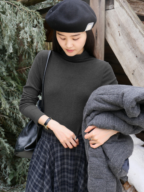 [티엔느] 모크넥 티셔츠_다크 그레이