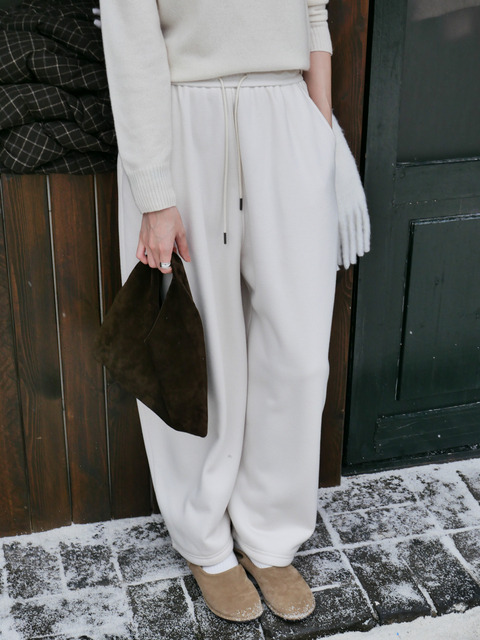 [티엔느] 플루이드 기모 세미 부츠컷 면 팬츠_화이트