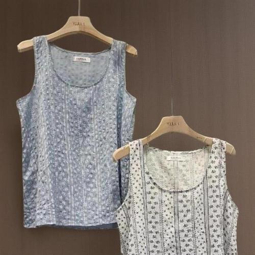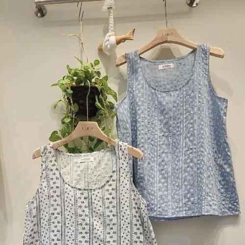 [신상오픈런]여성용 흰색 파란색 스트라이프 꽃무늬 민소매 면 셔츠 (38169700)
