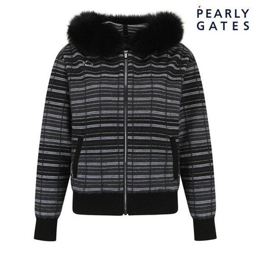 [파리게이츠] [23 WINTER] 여성 바니 스트라이프 퍼 후드 집업 가디건 521C4SD159BK