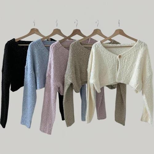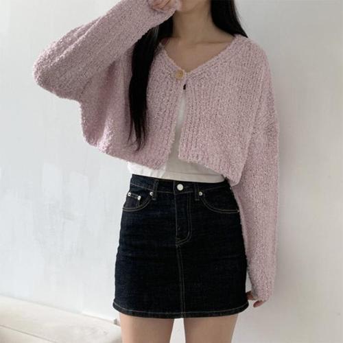 [신상오픈런]여성 크롭 소프트 덤블 니트 가디건 파스텔톤 싱글버튼 (42612510)