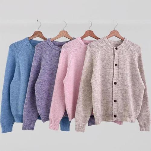 [신상오픈런]여성용 파스텔 골지 라운드넥 가을 니트 가디건 꽃단추 (40724097)