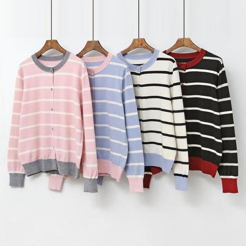 [신상오픈런]파스텔 핑크가디건 여성 스트라이프니트 라운드넥 (31862565)