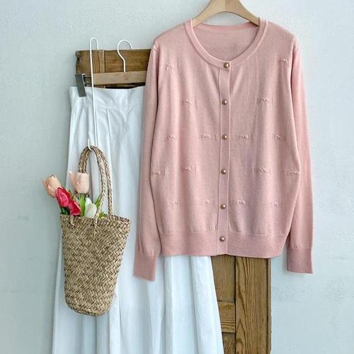 [신상오픈런]파스텔 핑크가디건 여성 우아하게 진주단추 라운드넥 (31862566)