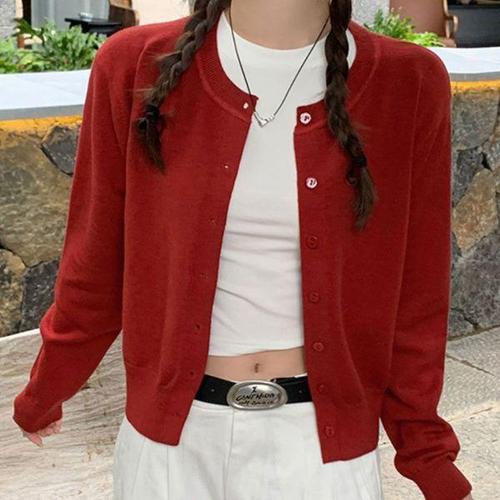 레몬소울 여성용 레모 베이직 라운드 니트 가디건