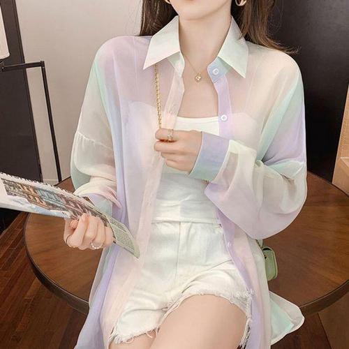 [에이치플러스몰]파스텔톤 여성 여름 긴팔 브이넥 가디건 얇은 시스루