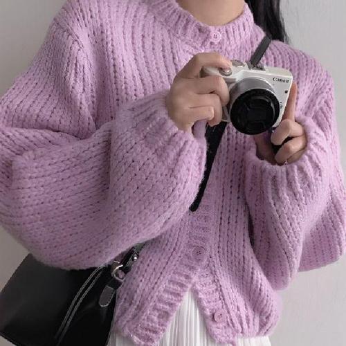 [에이치플러스몰]파스텔 벌룬소매 니트 가디건 ST228