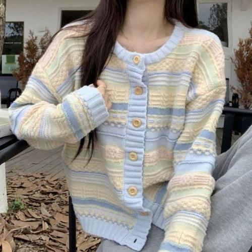 NUNUHANA 여성 파스텔 라운드 긴팔 가디건 BMA0523