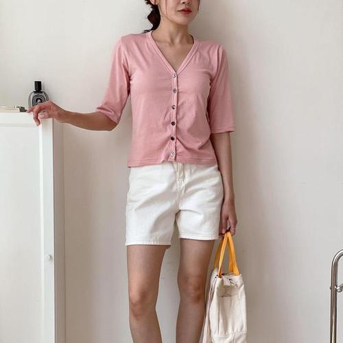 [신상오픈런]여성 여름 파스텔 색상 브이넥 기본 반팔 코튼 가디건 (36190143)