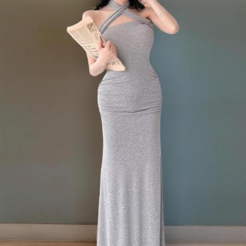 [신상오픈런]여성 파티 홀터넥 오프숄더 머메이드 롱 드레스 (35333395)