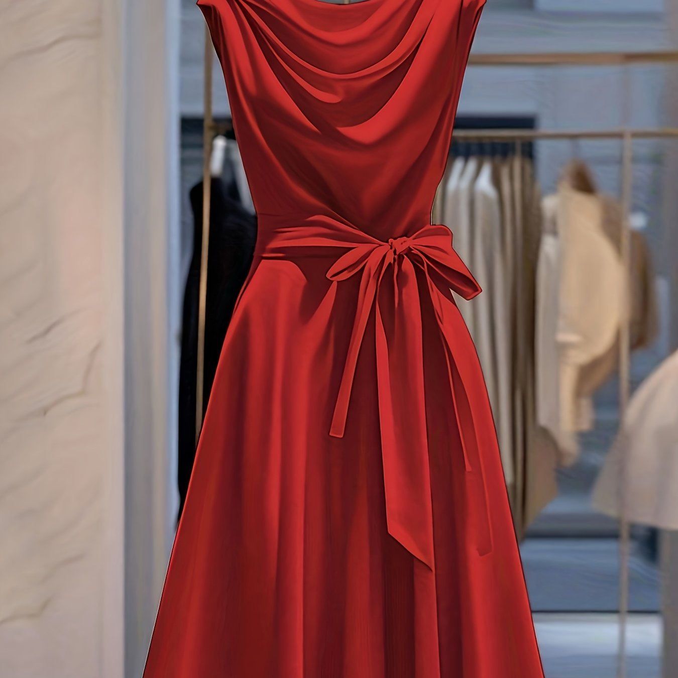 TEMU 러플 트림 민소매 캐미 드레스, 타이 웨이스트 스트랩 맥시 길이 드레스, 여성 의류