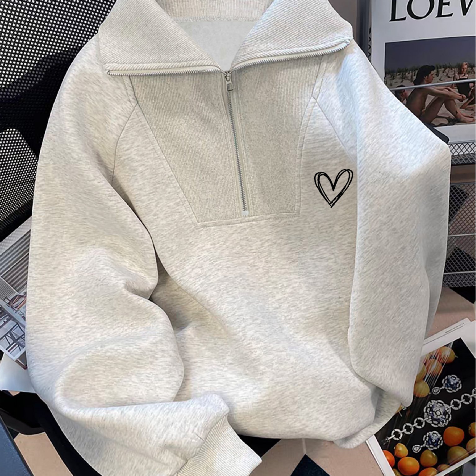 TEMU 미국 스트리트 스타일 가을 겨울 하트 프린트 긴팔 안감 지퍼 하이넥 여성 스웨트셔츠 홍콩 스타일 루즈 BF 레이지 다용도 디자인 탑