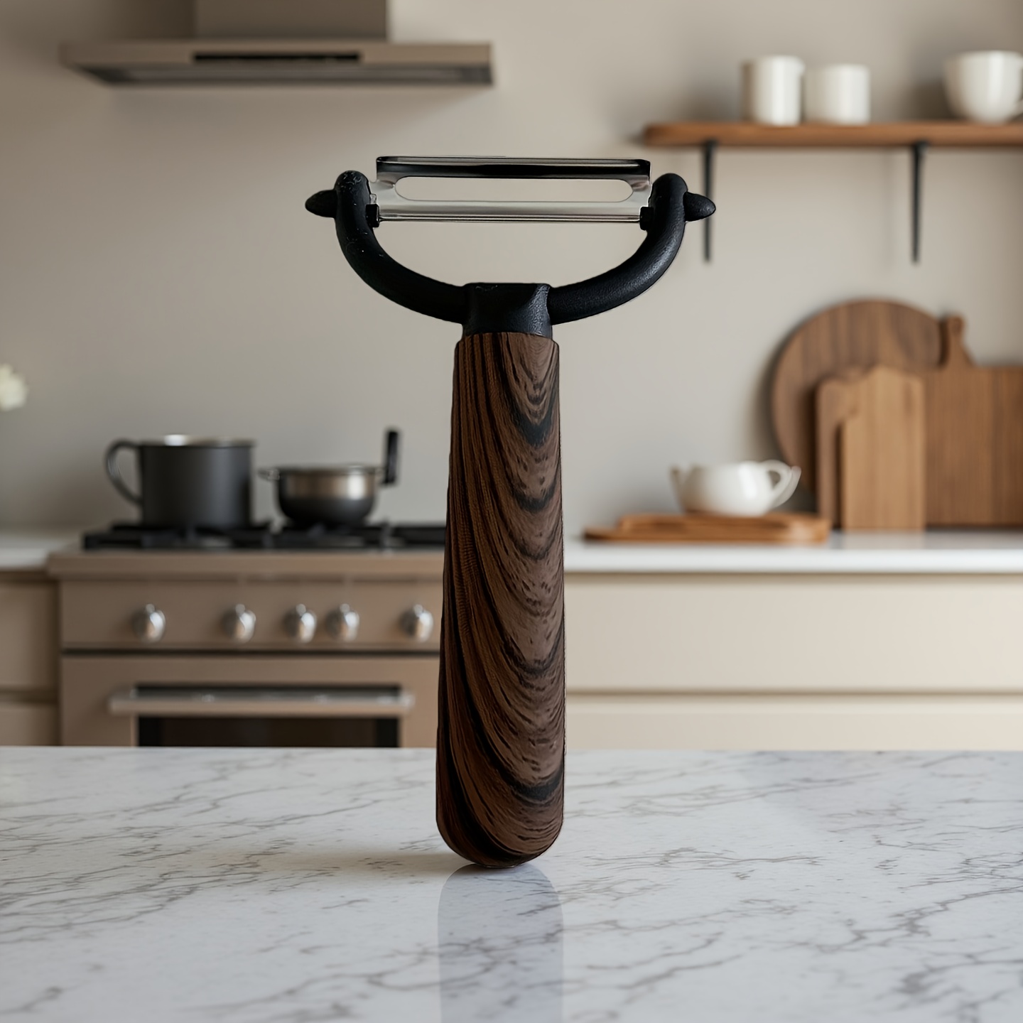 TEMU 다용도 채소 & 과일 필러, 날카로운 스테인리스 스틸 블레이드 & 레트로 월넛 컬러 - 감자, 사과, 당근 껍질 벗기기에 적합한 인체공학적 손잡이 - 식기세척기 안전 필러, 가정용 요리 도구로 이상적 (선물용)