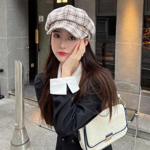 가을모자 여성 가을 팔각모 체크무늬 뉴스보이캡 예쁜 겨울모자 WFJHNTS