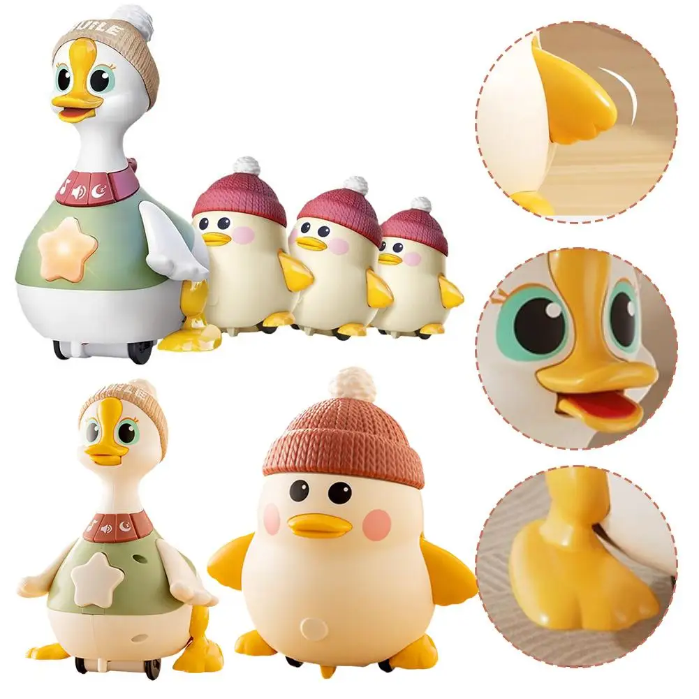 어린이 장난감 오리 DIY 레일 레이싱 트랙 작은 오리 등반 계단 장난감 전기 자동차 계단 음악 교육 장난감 아이 3-5Y