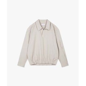 [24SS] LKS41306베이지 오버핏 오픈카라 밴딩 탑