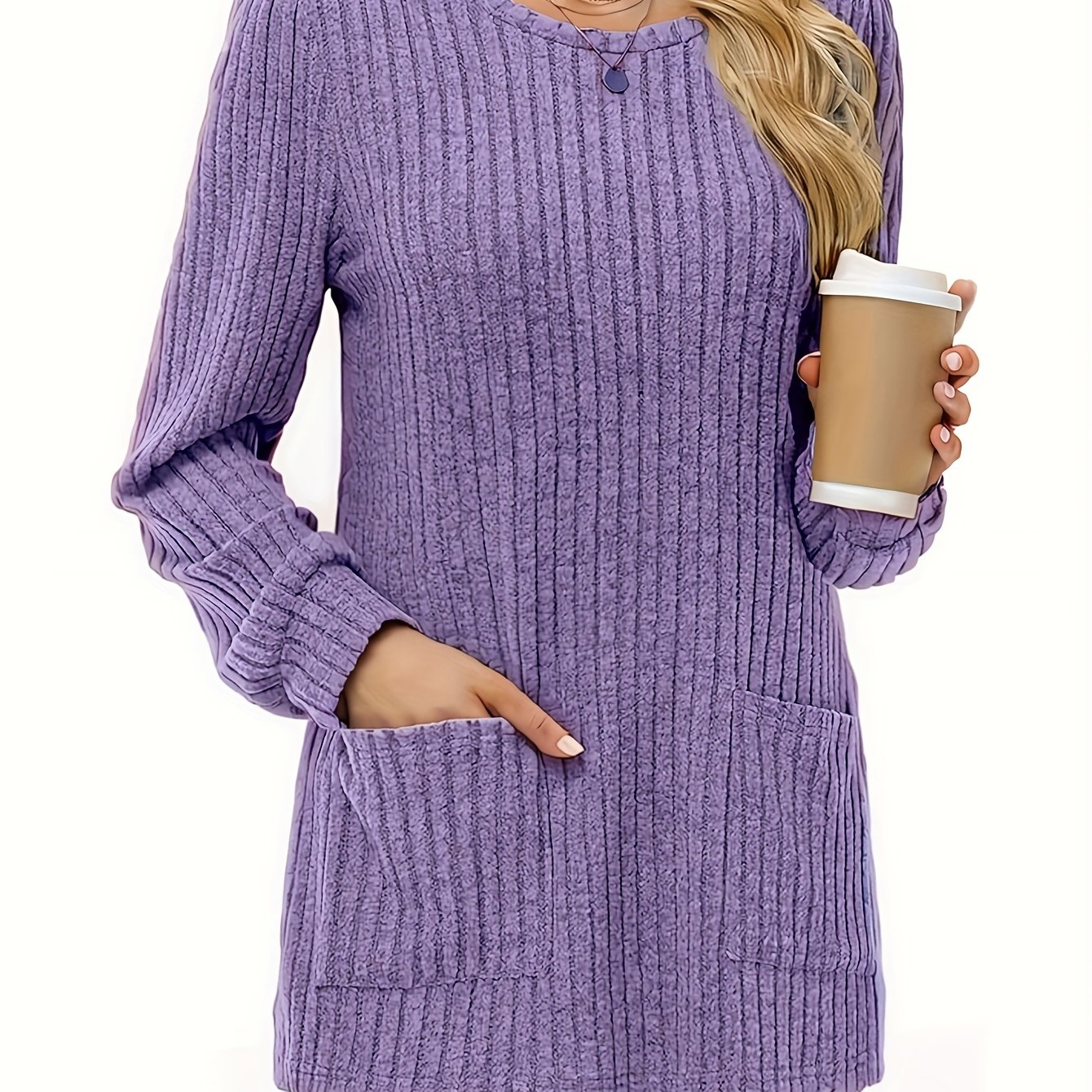 TEMU 여성용 캐주얼 긴팔 라운드넥 스웨터, 가을 겨울 필수 루즈핏 패션 스웨트셔츠, 여성 스웨트셔츠