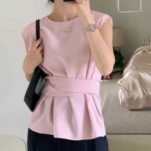 TEMU 봄/여름 여성 빈티지 다용도 우아한 플리츠 솔리드 컬러 민소매 셔츠