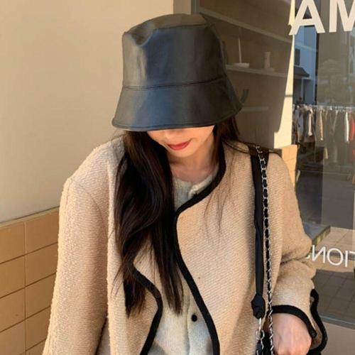 여자 2컬러 패션모자 베이직 레더 버킷햇 가죽벙거지 WFKN4ML