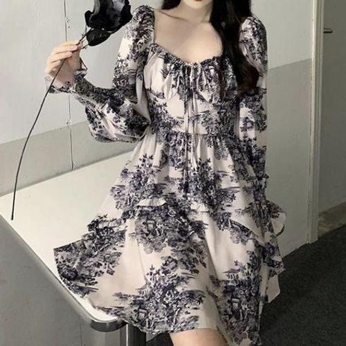 여성 원피스 귀여운 여자 플라워 패턴 미니 원피스