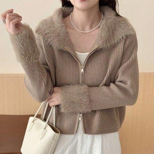 퍼 크롭자켓 여자 트위드 아우터 페이크 밍크 가디건 WFLQ8B4