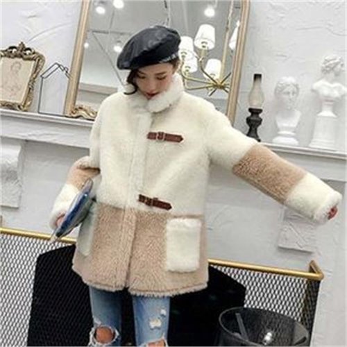 여자 혁대 FW 양털 퍼코트 하프 시어링 코트