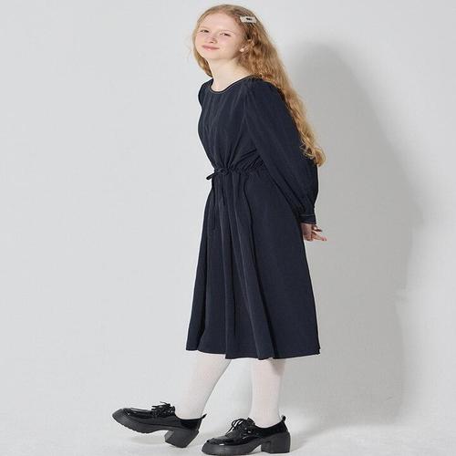 [옷자락] 여자 데일리 볼륨 퍼프 소매 허리 스트링 미디 원피스