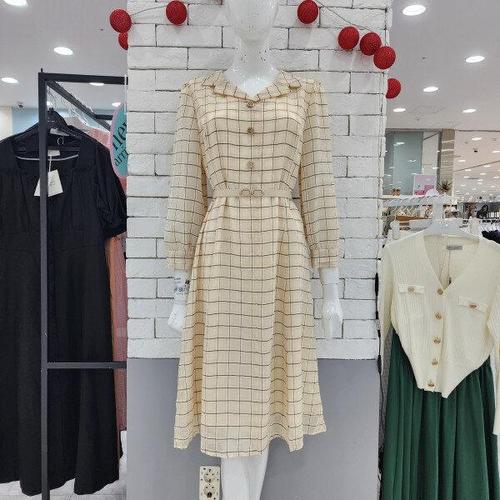[베스띠벨리]햅번 레이온 오픈카라 체크 퍼프 원피스 ( BGOAC25070 )