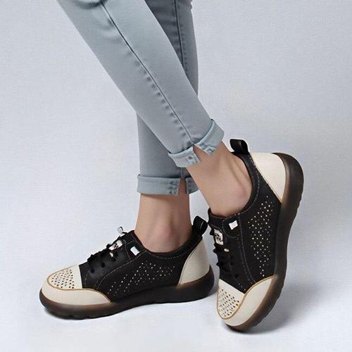 [에이치플러스몰]여성 펀칭 소가죽 배색포인트 스니커즈 단화 캐주얼룩